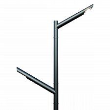 Комплекс освещения Ева конус 4-1-30 трубчатый представляет собой одноконсольную уличную опору высотой четыре метра. Конструкция изготовлена из прочной стальной трубы диаметром восемьдесят девять миллиметров. Особенностью модели является угол наклона консоли в тридцать градусов, что обеспечивает направленное освещение целевой зоны. Вылет консоли составляет девятьсот миллиметров, что оптимально для локального освещения. Антикоррозионная защита обеспечивается комбинированным покрытием: горячее цинкование и последующее порошковое или полимерное окрашивание в любой цвет по каталогу RAL. На наклонную консоль устанавливается современный светодиодный светильник.
